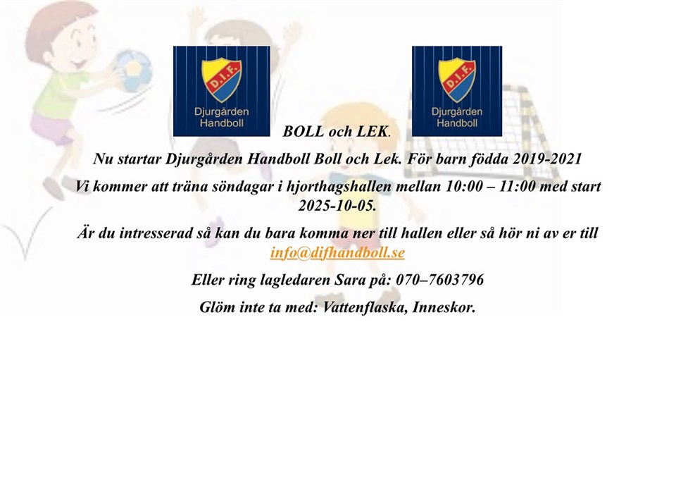 Har ni frågor eller funderingar? Hör av er till info@difhandboll.se eller ring vår lagledare Sara på 070-760 37 96.